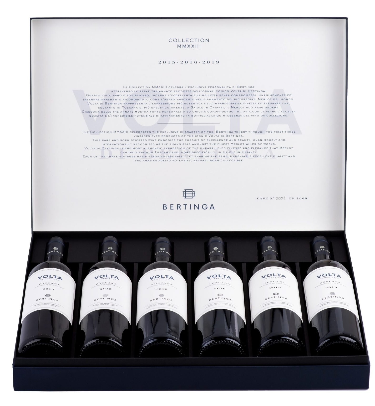 Este kit exclusivo oferece uma rara vertical com seis garrafas das safras 2015, 2016 e 2019, cada uma cápsula do tempo: